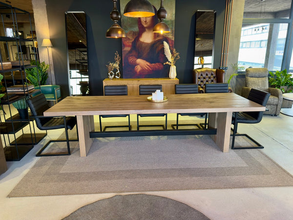 Esszimmertisch aus massiver Eiche mit modernem Stahlgestell | Modell RIMI